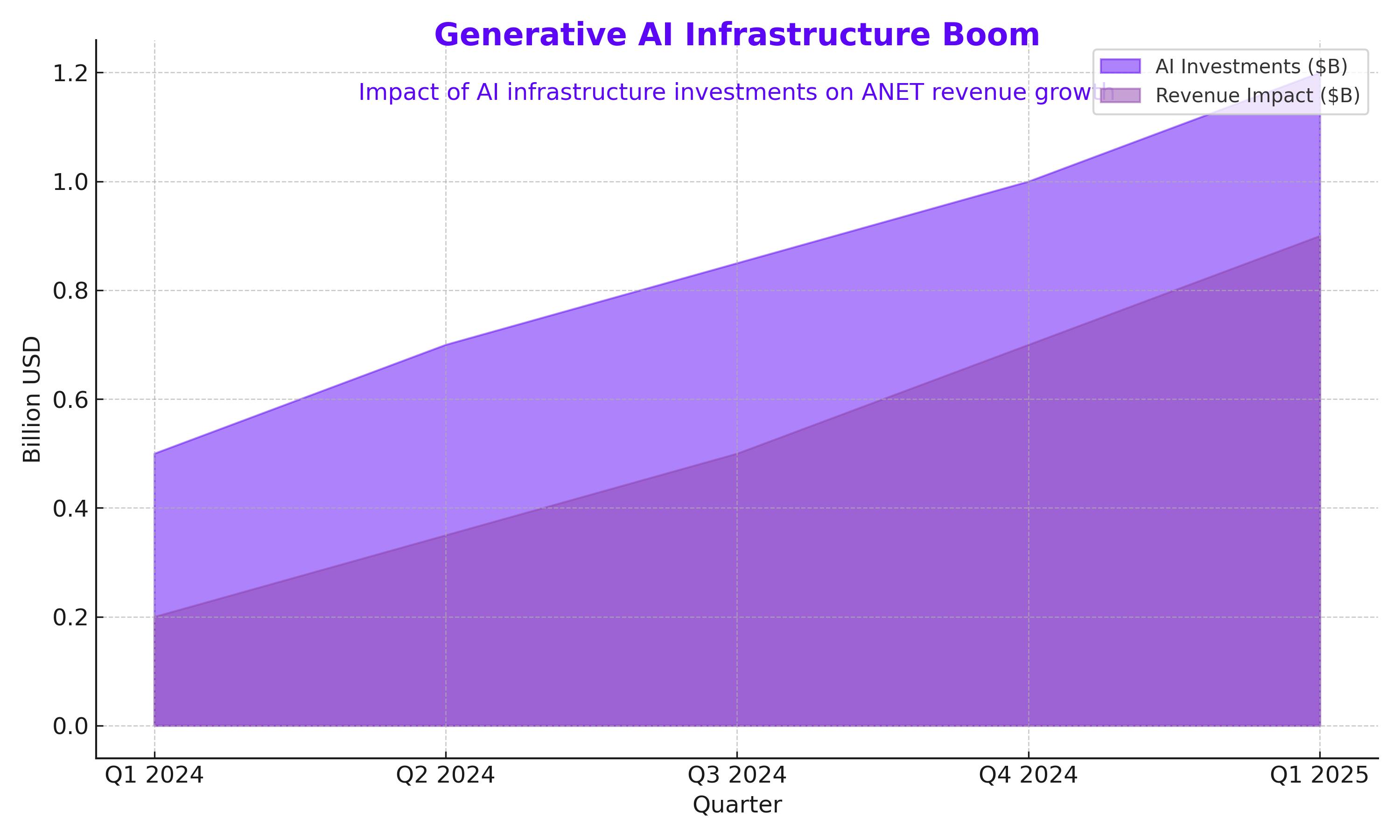 Arista Networks is well-positioned to benefit from the ongoing boom in generative AI infrastructure. The company’s advanced networking solutions are critical for the data centers of major tech giants, and with AI-related capex increasing, Arista’s growth trajectory looks promising.